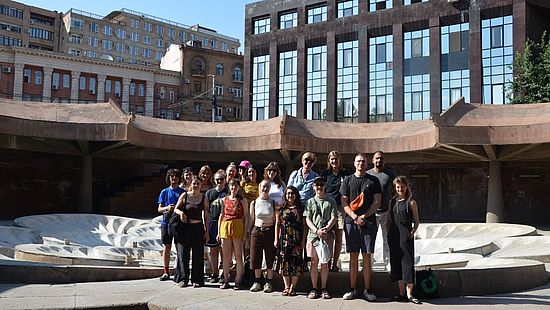 Im Zentrum der Exkursion nach Armenien und Georgien stand die Auseinandersetzung mit zeitgenössischen Kulturschaffenden. Mit ihnen wurden Gespräche geführt sowie gemeinsame Besuche von Stätten der Gegenwartskunst und -kultur organisiert. Ausgangspunkt war das gemeinsame Forschungsinteresse der Dozentinnen Lilit Khandakaryan und Anna Hodel zu zeitgenössischer, unabhängiger Kunst und Kultur aus verschiedenen postsowjetischen „Peripherien”, welche sich kritisch mit dem sowjetischen und sozialistischen Erbe auseinandersetzen und gleichzeitig sensibel auf Herausforderungen der globalen Gegenwart reagieren, insbesondere auf Fragen der genderbezogenen Emanzipation in den postsozialistischen Transformationsprozessen. „Postkoloniale” und „dekoloniale” Theorien stehen hier ebenso auf dem Prüfstand wie „feministische”: Sie sollen aus der lokalen Perspektive neu gedacht und somit „dezentralisiert” werden. Im vorangehenden Seminar beschäftigten sich die Studierenden mit Texten, Manifesten, Performances, Fotografien und Filmen – mit unterschiedlichen künstlerischen und aktivistischen Positionen von Individuen und Kollektiven aus Armenien und Georgien. Darüber hinaus erwarben sie Kompetenzen in der Kulturgeschichte der Gegenwart des Südkaukasus sowie in globalen und lokalen kunsttheoretischen Ansätzen im Kontext dekolonialer und queer-feministischer Perspektiven. Das im Seminar gewonnene Wissen wurde während der Exkursion in Gesprächen mit Künstler:innen, Kulturschaffenden sowie Forscher:innen der lokalen Universitäten in die konkrete Praxis umgesetzt und überprüft. Die Gespräche und Begegnungen wurden zudem in einem zweiten Reflexionsschritt schriftlich und fotografisch dokumentiert – viel Spass bei der Lektüre!